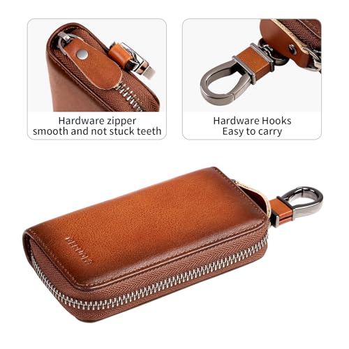 More information about Leather Key Holder Case - Zippered Key Organizer Wallet, Cash Leather Case Wallet with 6 Hooks,1 Removable key ring& 1 Keychain for Card - Gift for Men Women (Brown)