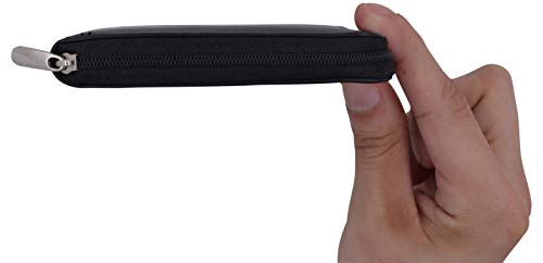 Genuine Cowhide Leather Mens Zipper Zip-Around Bifold Popular Card Holder Wallet (Black) 5