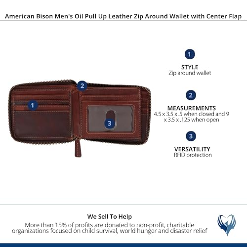 HOT ! Men's Oil Pull Up Leather Zip Wallet with Center Flap by American Bison