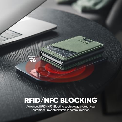 VULKIT Credit Card Holder with Money Pocket Pop up Wallet Metal Card Case RFID Blocking for Airtag, Coins and Cash Green 5