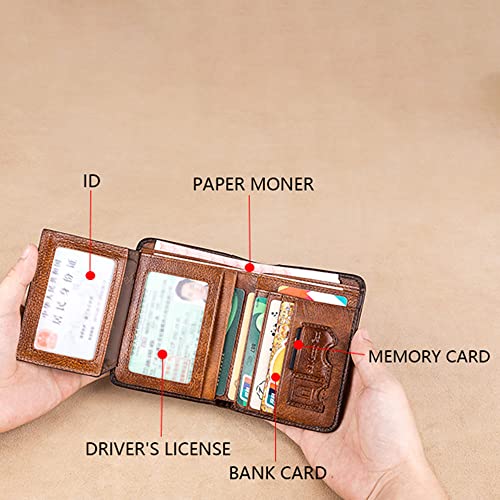 TEAMWILL Genuine Leather Men's Trifold Wallet RFID Blocking Credit Card Holder Retro 6
