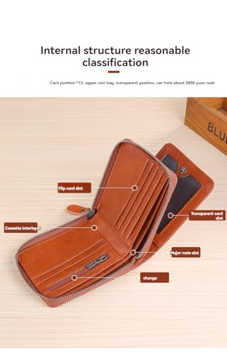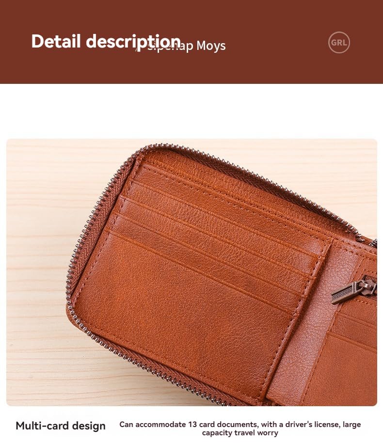 More information about Mens Genuine Leather Zipper Wallet RFID Secure Large Capacity Double Fold Multi-card Leather Wallets for Men and coin purse,Brown