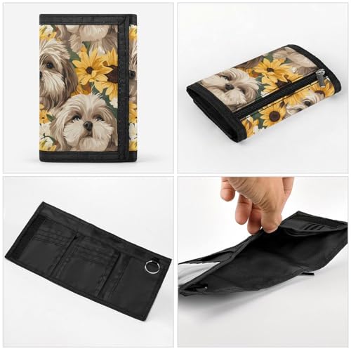 Shih Tzu And Sunflowers Slim Men's Tri-Fold Wallets With 8 Card Slot & Photo Window Travel Purse Coin Clip 1