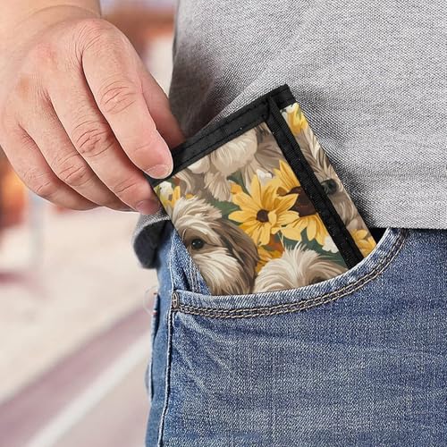 Shih Tzu And Sunflowers Slim Men's Tri-Fold Wallets With 8 Card Slot & Photo Window Travel Purse Coin Clip 5