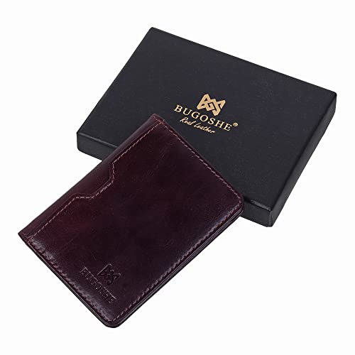 • ✅ FULL GRAIN LEATHER: This BUGOSHE credit card wallet for men is made of high-quality full grain crunch leather, made from top layer of the cow skin. Full Grain leather is the top layer of the hide, contains all grains which provides natural shades and high durability. This cardholder has lightweight, yet very soft, durable and have smooth texture.