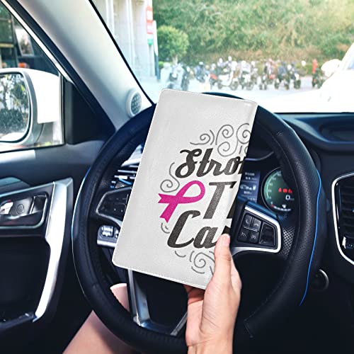 Breast Cancer Pink Ribbon Stronger Than Cancer Leather Driver License Cards Holder, Car Registration and Insurance Card Holder, Leather Card Document Organizer for Men Women 6