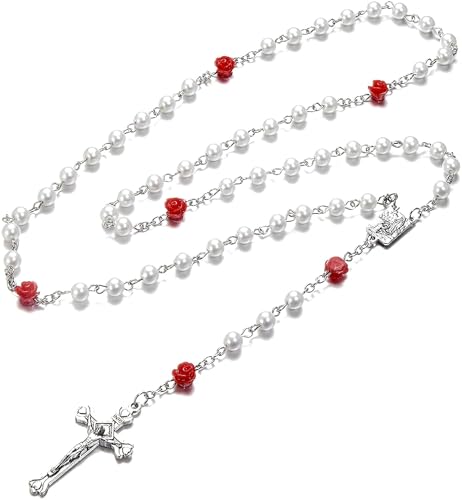 HOT ! Rosary Beads Catholic Bulk for Women Men, Rose Our Father Beads with Jesus Christ Crucifix Cross First Communion Confirmation Gifts-6 Packs