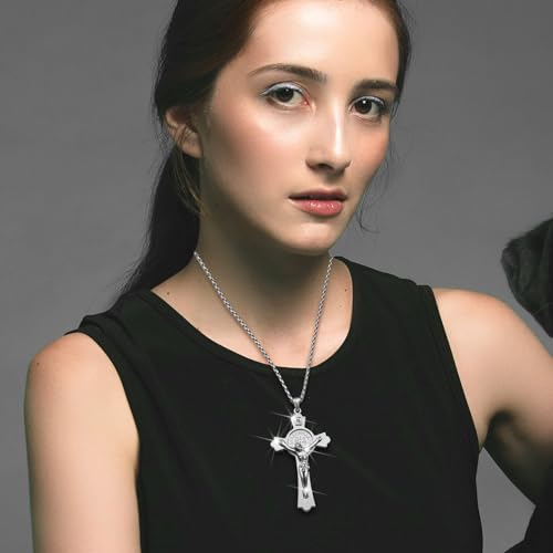 • High-Quality Craftsmanship: Crafted with meticulous attention to detail, this St. Benedict cross necklace medal is made from premium zinc alloy to ensure durability and longevity, the chain is stainless steel. The exquisite craftsmanship and superior quality make it a perfect accessory for everyday wear or special occasions. Chain length: 23.62 inches/ 60cm, thickness: 0.1 inches/ 2.5mm. Cross pendant size: 2.76 inches/7cm x 1.69 inches/4.3cm. Total weight: 1.73 ounces/ 49g.