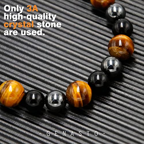 • 【CRYSTALS BEADS】Protection crystal necklace for men made by tiger eye, obsidian and hematite, hand-sorted each type of natural stone, and supervise the grinding and polishing process, beaded and woven by great skilled craftsmen, to ensure that you receive fine-quality necklace.