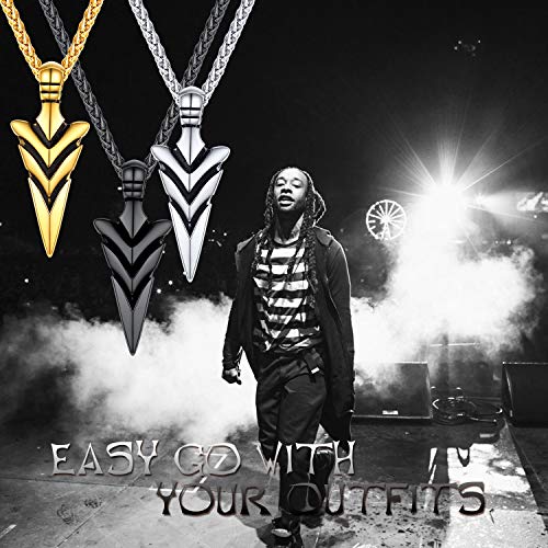 U7 Men Rock Hip Hop Jewelry Stainless Steel 18K Gold Plated Spear Point Arrowhead/Wolf Teeth Pendant Necklaces 22" 2