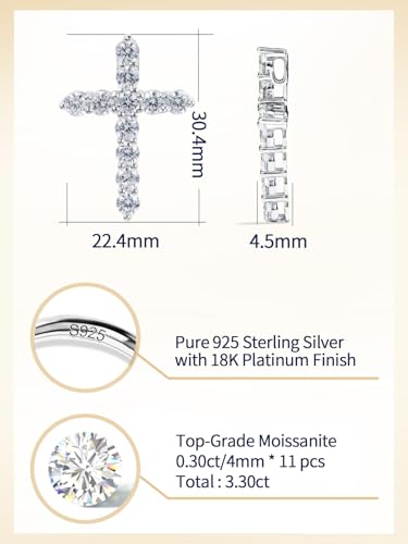 • 【Brilliant Cross Necklace】 Moissanite Size and Quantity: 4mm*4mm*11pcs, Total: 3.30 Carat. Breathtakingly Beautiful Cross Pendant Necklace, Distinctive Symbol of Faith and Love, Sure to be a Forever Piece of Your Jewelry Collection. Wearing this Necklace, Brighten Your Style, Feeling the God always Stay with You.