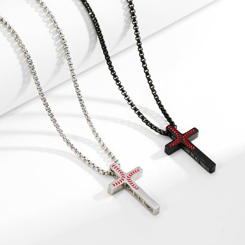 Baseball Necklace for Men Confirmation Bible Verse Baseball Stainless Steel Cross Pendant Necklaces 18+2 Inches 5