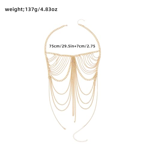 More information about Sexy tassel body chain bra chain gold body jewelry bikini chain beach shoulder chain accessories carnival nightclub party gift (golden-3666)
