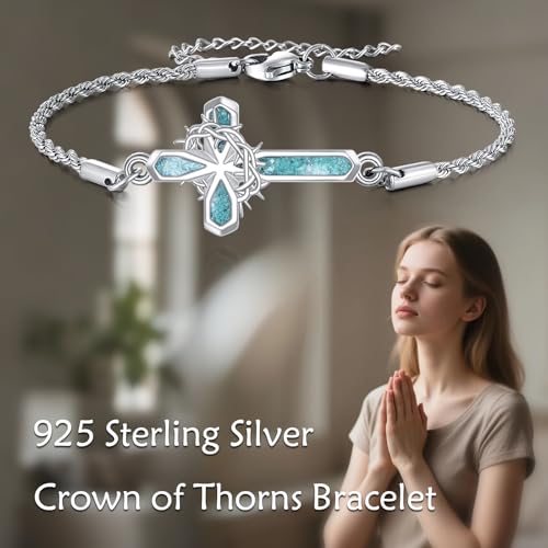 • 【Size of Thorns Crown Bracelet 】 Twist Rope Chain Length:7"+2" extender = 22cm | Chain Width:0.07" = 2 mm | Pendant Size:0.98 = 25 mm in width| Comfortable, suitable for women, men, a timeless addition to everyone's everyday look. Perfectly suited for those who desire more than just an accessory, turquoise cross Bracelet embodies spiritual strength and unwavering determination. Wear it on any occasion to add a touch of sophistication and depth to your ensemble