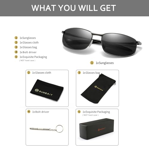 SUNGAIT Mens Narrow Polarized Sunglasses Metal Frame Small Rectangle Retro Durable UV400 Protection 6