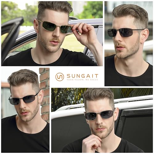 More information about SUNGAIT Mens Narrow Polarized Sunglasses Metal Frame Small Rectangle Retro Durable UV400 Protection
