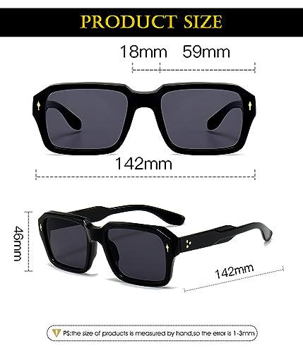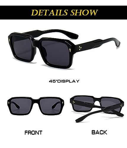 • 【HIGH QUALITY FRAME DESIGN】This fashionable rectangular sunglasses are made of high-quality acetate fiber and reinforced metal hinges, paired with a popular rivet design. The anti-slip design on the inner end of the mirror legs allows you to easily wear them all day long.