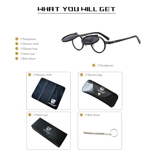 HYLLE Retro Flip-Up Round Goggles Seampunk Sunglasses for Men Women 90s Style 5