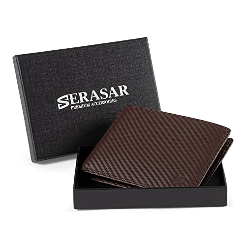 HOT ! SERASAR | Premium Genuine Leather Wallet for Men in Carbon Optic Brown | 9 Card Slots | RFID Protection | With Gift Box