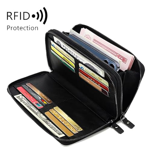 HOT ! Wallet for Men with Wrist Strap - Card Holder Wallet with Phone Pocket, Large Capacity Zip Around Travel Wallet for Cards & Cash (Black)