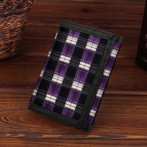 • Present Ideal: With a fashionable print design, this Purple And White Plaid Print billfold wallet for men is more than just a practical accessory. Its exquisite appearance makes it an exceptional present for fathers, boyfriends, brothers, or sons. It's a thoughtful choice that brings delight across various occasions, celebrating style and function