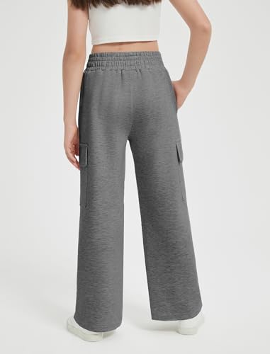 EXARUS Girls Sweatpants Wide Leg Baggy Teen Sweat Pants Cargo/Side Striped/Crossover V Waist Casual with Pockets 6-14Y 6
