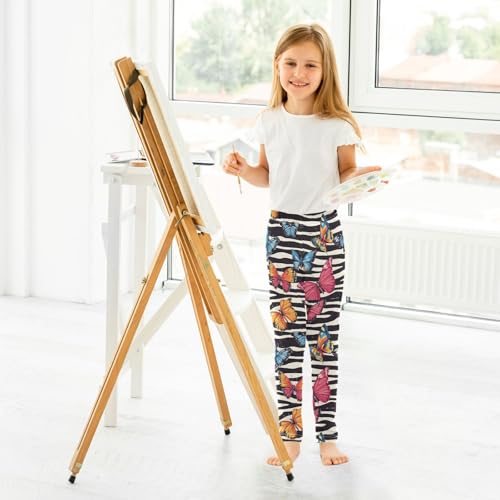 Boccsty Colorful Butterflies Zebra Stripes Girls Leggings Kids Yoga Pants Dance Active Tights 4T 5