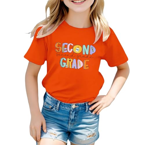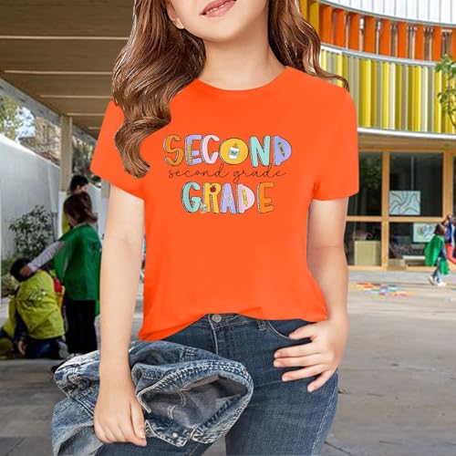 HOT ! Girls 2nd Grade Shirt Back to School Outfits First Day of School Graphic Round Neck T-Shirts Kids Summer Tee Tops