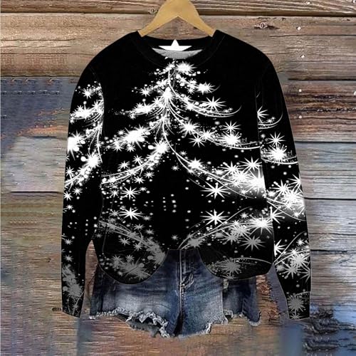HOT ! Christmas Sweatshirts for Women 2024 Glitter Xmas Tree Graphic Long Sleeve Crewneck Shirt Casual Fall Winter Pullover