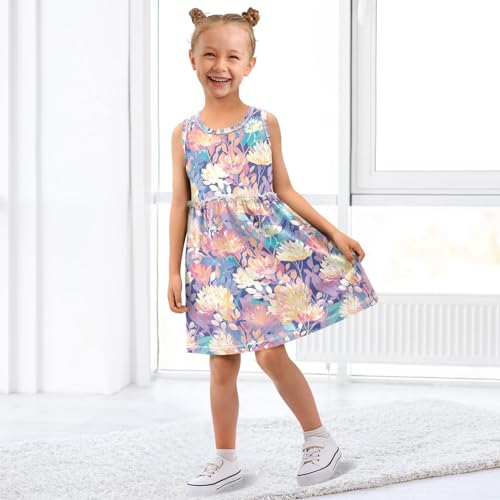 KLL Autmun Trendy Floral Pattern Girls A-Line Dress Casual Beach Sundress Spring Summer Crew Neck 6