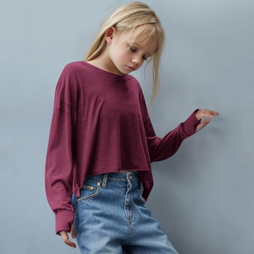 Shirts for Girls Fall Fashion Athletic Workout Long Sleeve Gym Tops Casual Losse Fit Solid Open Back Top Thumb Hole 7