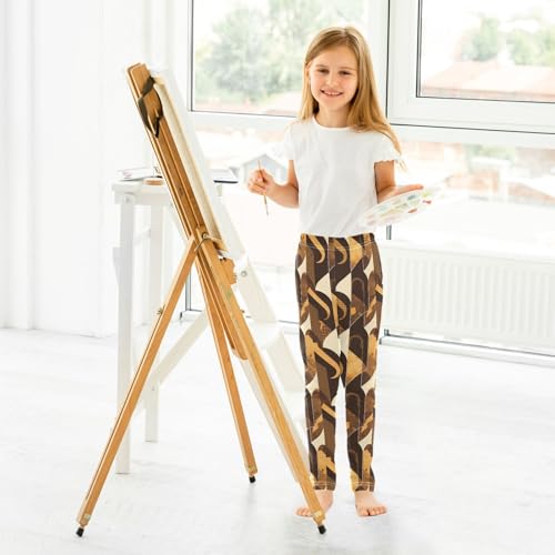 Brown Houndstooth Gold Kids Baby Girls Legging Casual Full Length Activewear Sports 6