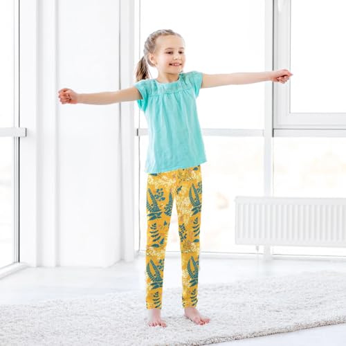 KLL Ferns Vintage Botanical Saffron Little Girls Legging Comfortable High Waisted Pants Gym 5