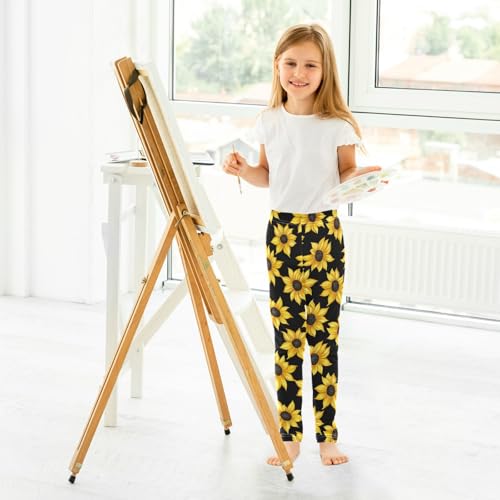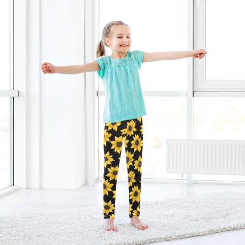 Wusikd Sunflowers Girls' Leggings Toddler Doodles Yellow Kids Yoga Pants Dance Active Tights 4T 7