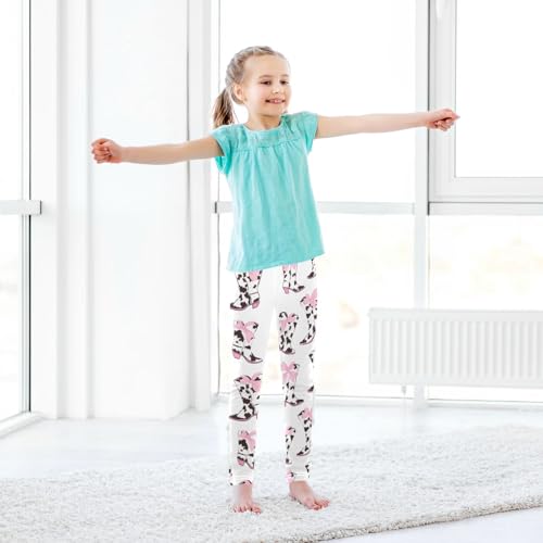 Wusikd Cow Print Cowboy Boots Girls' Leggings Toddler Doodles Pink Bows Kids Yoga Pants Dance Active Tights 4T 7