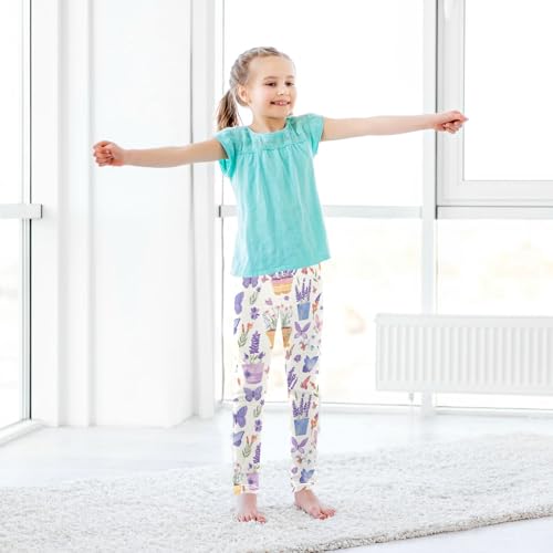 Wusikd Butterflies Lavender Girls' Leggings Toddler Doodles Flower Pots Kids Yoga Pants Dance Active Tights 4T 7