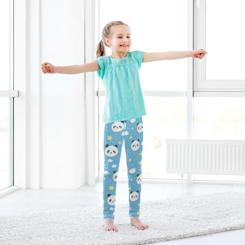 Wusikd Pandas Faces Clouds Girls' Leggings Toddler Doodles Moon Stars Kids Yoga Pants Dance Active Tights 4T 7