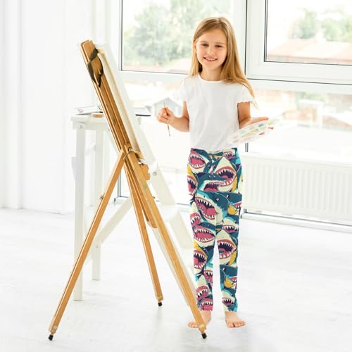 Colorful Sharks Girls' Leggings Toddler Doodles Open Mouth Kids Yoga Pants Dance Active Tights 4T 7