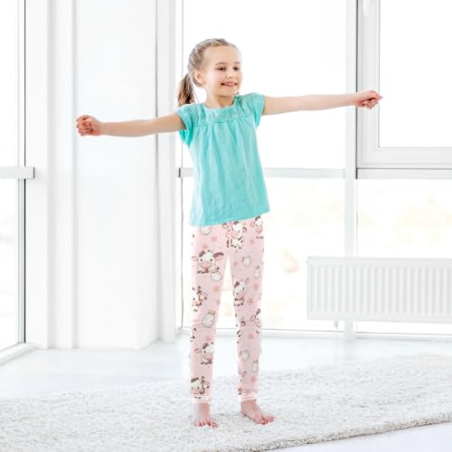 Wusikd Cute Baby Cow Girls' Leggings Toddler Doodles Milk Bottles Kids Yoga Pants Dance Active Tights 4T 7