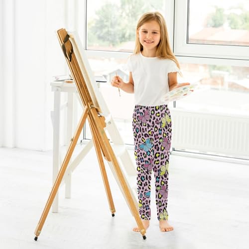 Butterfly Leopard Girls Leggings,Workout Leggings for Girls Toddler Athletic Leggings Size for 3-10T 1