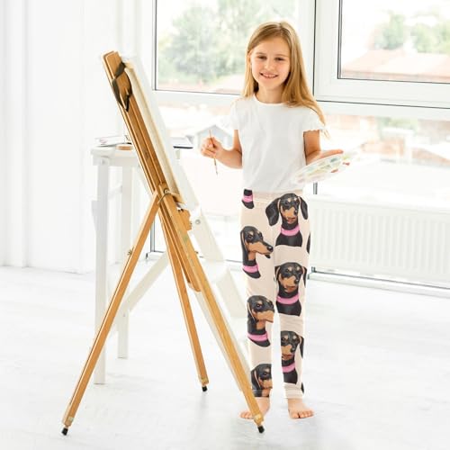 HOT ! Dachshund in Collar Girls Leggings,Workout Leggings for Girls Toddler Athletic Leggings Size for 3-10T