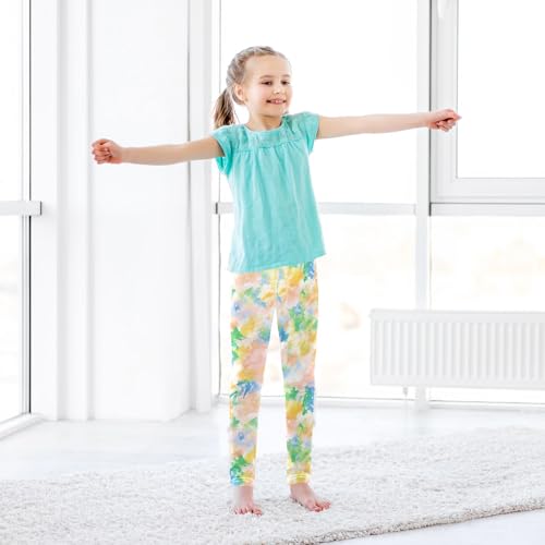 Abstract Pastel Soft Tone Girls Leggings,Workout Leggings for Girls Toddler Athletic Leggings Size for 3-10T 4
