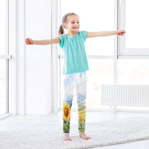 Toddler Girls Leggings Printed Yoga Pants Leggings White Sky Sunflower for Kids 4