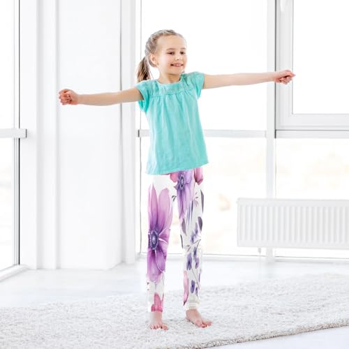 Toddler Girls Leggings Printed Yoga Pants Leggings Purple Flower Leaves for Kids 4