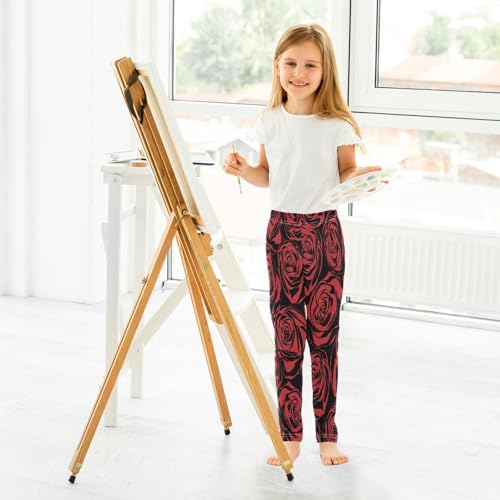 Bolaz Toddler Girls Leggings Printed Yoga Pants Leggings Red Roses for Kids 7