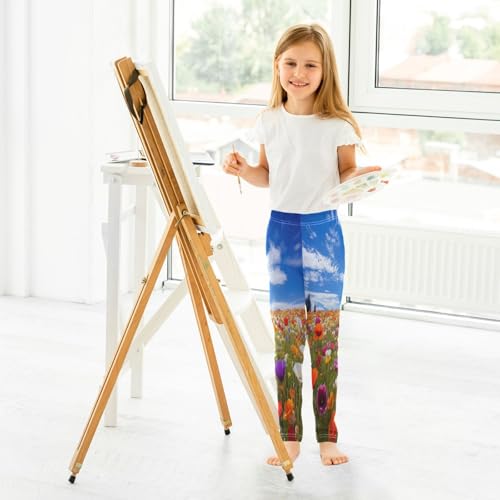 Bolaz Toddler Girls Leggings Printed Yoga Pants Leggings Orange Purple Flower for Kids 7