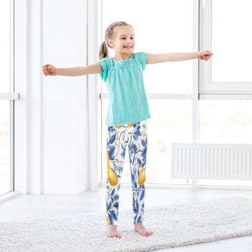 Bolaz Toddler Girls Leggings Printed Yoga Pants Leggings Blue Leaves Lemon for Kids 7