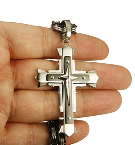 More information about LOLIAS 5MM Stainless Steel Cross Pendant Necklace Men Byzantine Chain Necklace 22-30 Inches