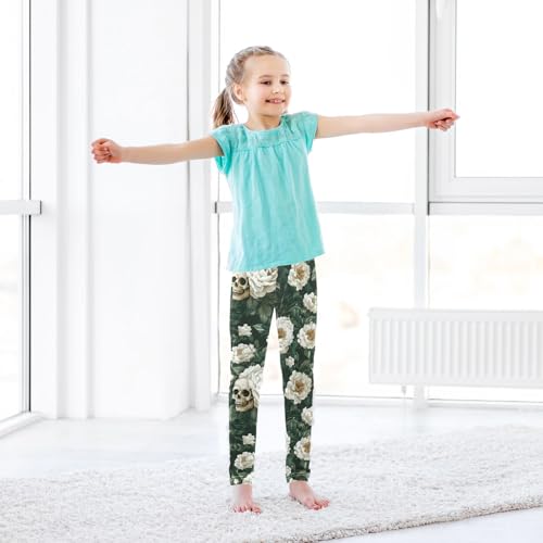 ZZKKO Girls Leggings Flowers Peony and Skull Toddler Girls Clothes Leggings for Girls Toddler Girls Leggings 3-4T 4