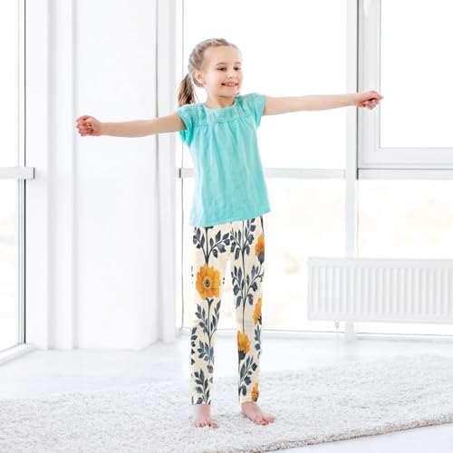 Bolaz Toddler Girls Leggings Printed Yoga Pants Leggings Indigo Marigold Flowers for Kids 7